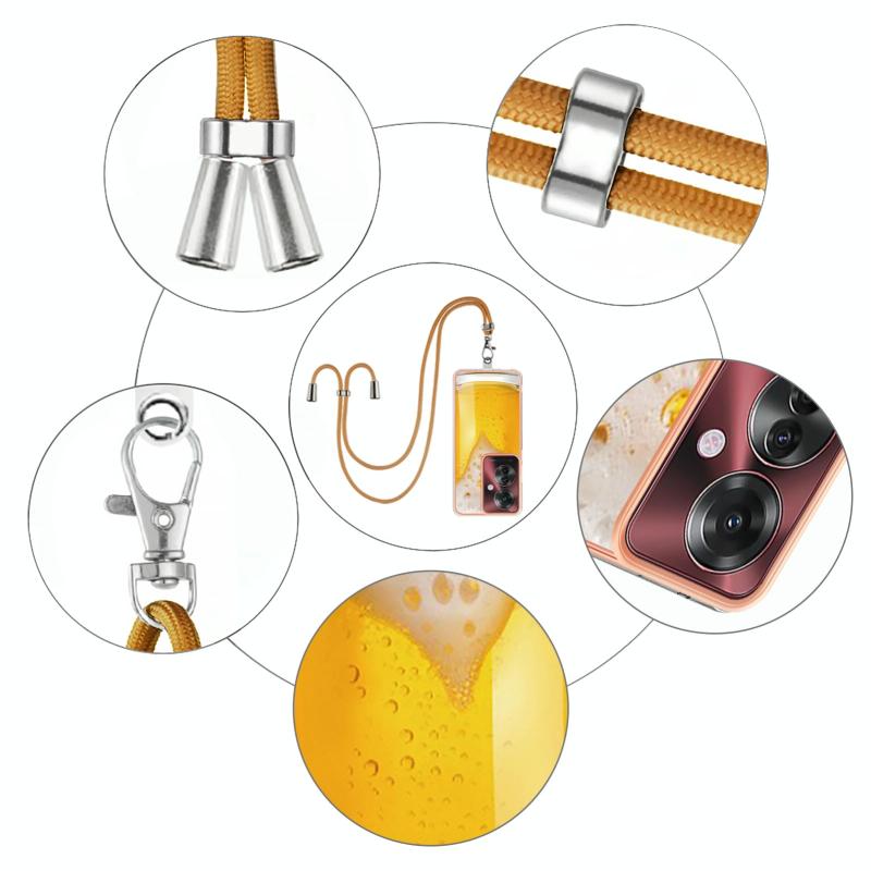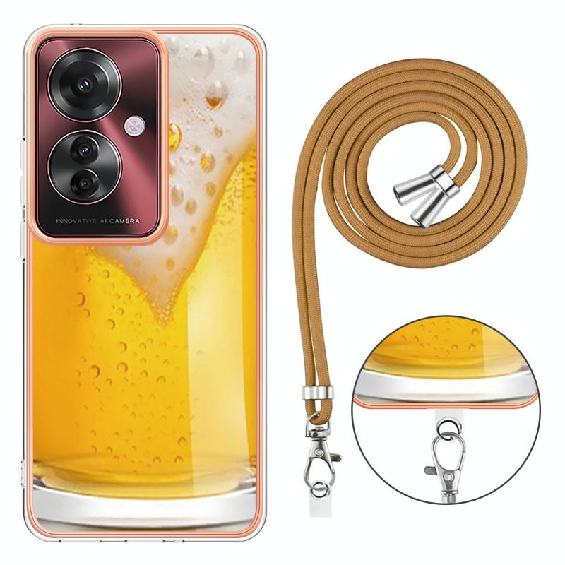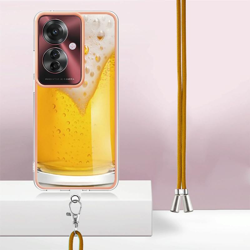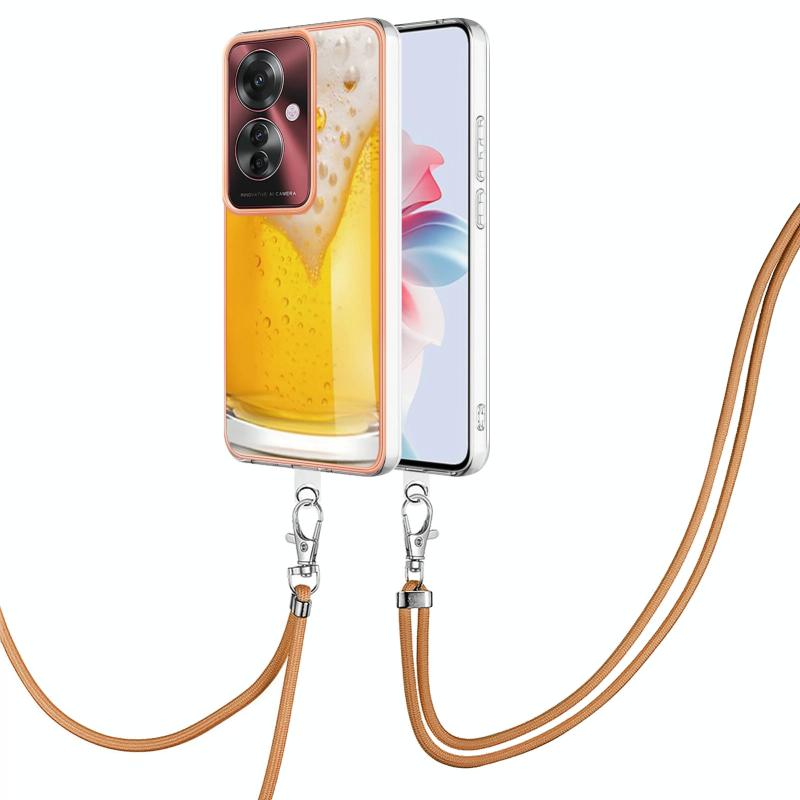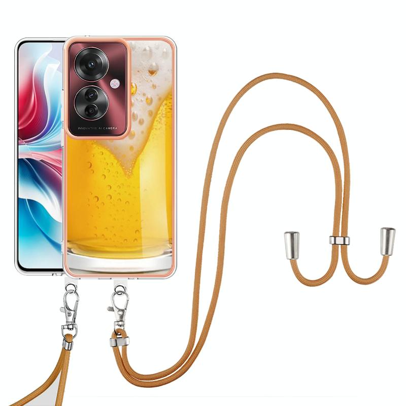 For OPPO Reno11 F 5G Global Electroplating Dual-side IMD Phone Case with Lanyard(Draft Beer)