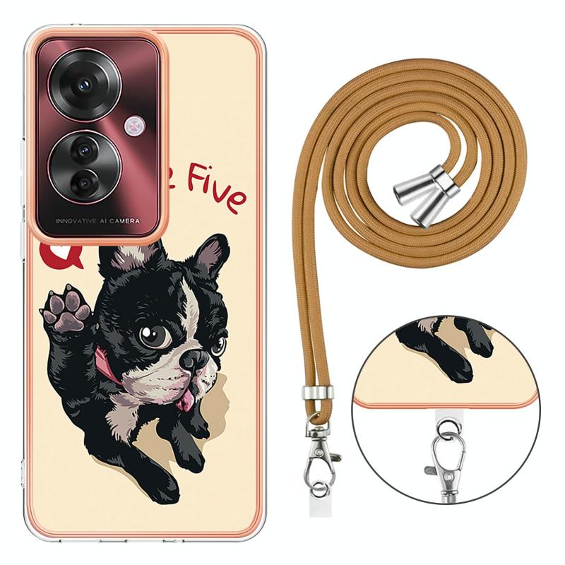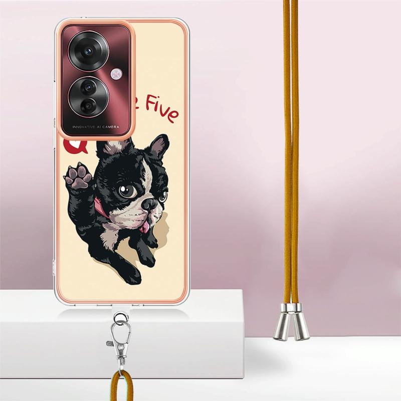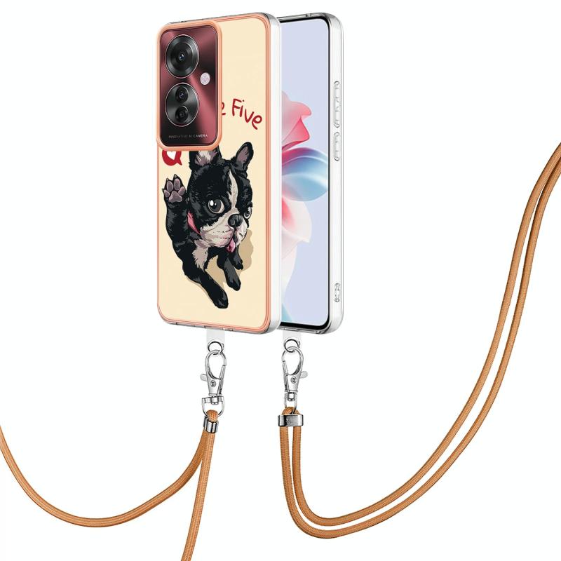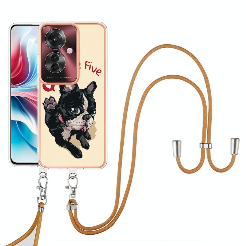 For OPPO Reno11 F 5G Global Electroplating Dual-side IMD Phone Case with Lanyard(Lucky Dog)