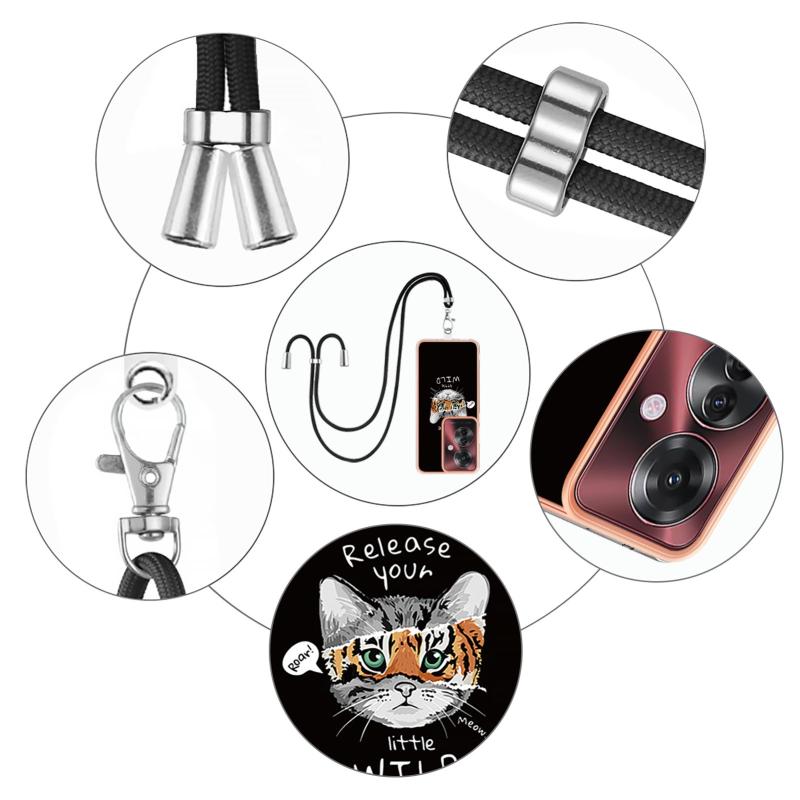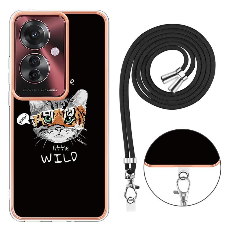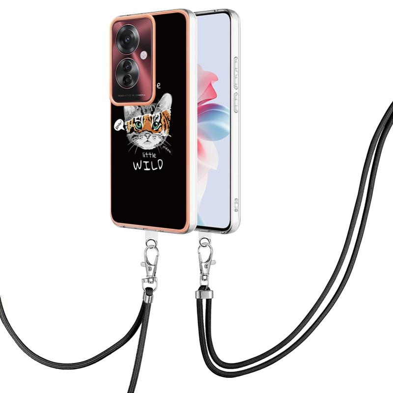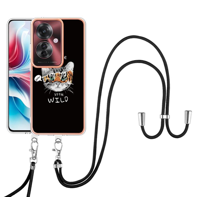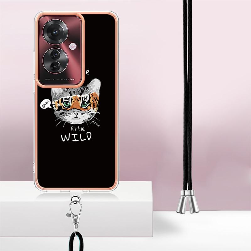 For OPPO Reno11 F 5G Global Electroplating Dual-side IMD Phone Case with Lanyard(Natural Growth)