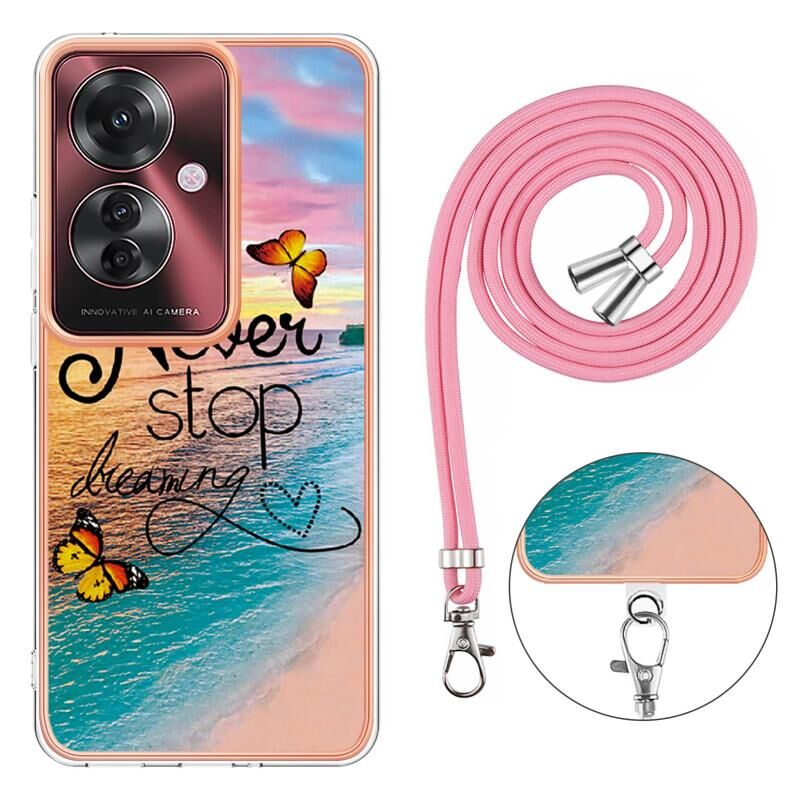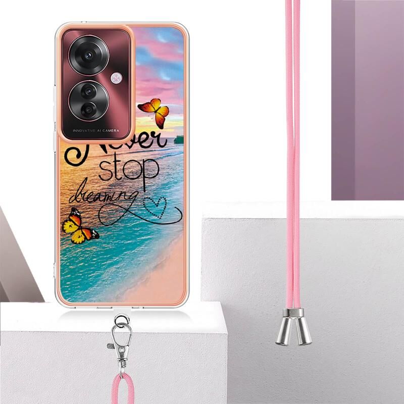 Θήκη προστασίας για OPPO Reno11 F 5G Global με ηλεκτρολυτικό σχέδιο IMD TPU, ανθεκτική σε κρούσεις, με κορδόνι λαιμού (Πεταλούδα που κυνηγάει όνειρα)
