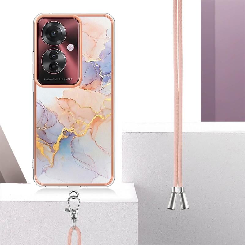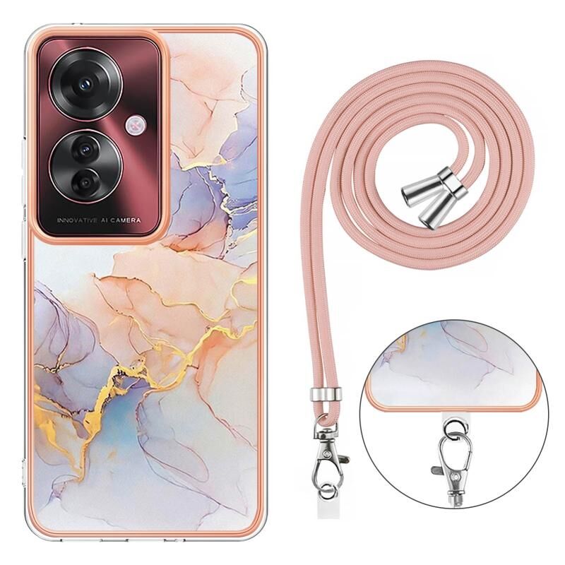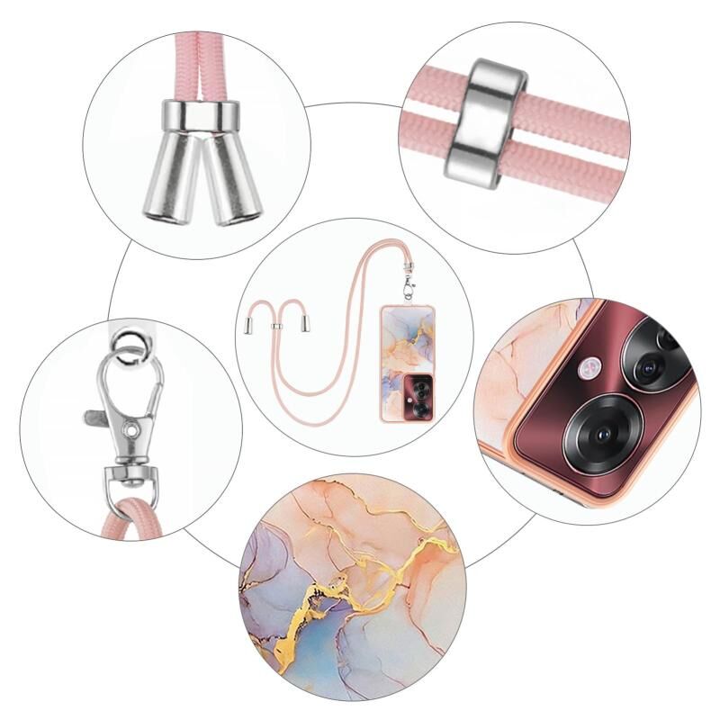 Θήκη προστασίας για OPPO Reno11 F 5G Global με μοτίβο ηλεκτρολυτικής επιμετάλλωσης IMD TPU αντικραδασμική με λουρί λαιμού (Ροζ Λέπια)