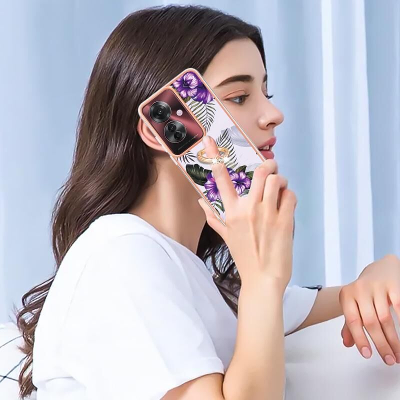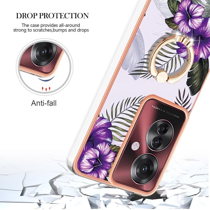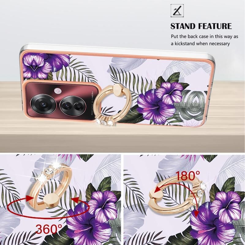 Θήκη προστασίας για OPPO Reno11 F 5G Global με ηλεκτρολυτικό σχέδιο IMD TPU, ανθεκτική σε κρούσεις με δαχτυλίδι στήριξης και ρητίνες (Ροζ Λέπια)