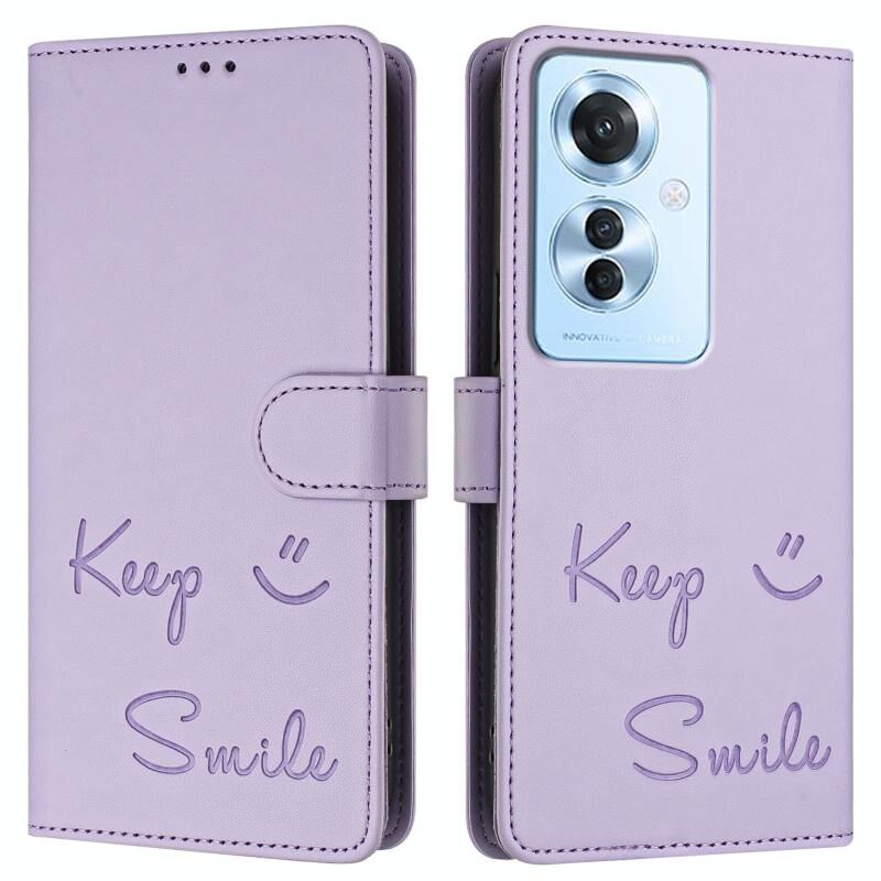 Για OPPO Reno11 F 5G Global Smile ανάγλυφο RFID δερμάτινη θήκη τηλεφώνου (Light Purple)