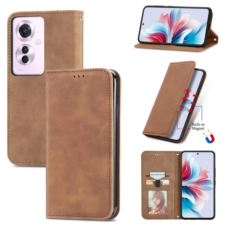 Για OPPO Reno11 F 5G Δερμάτινη Θήκη Flip με Μαγνητικό Κλείσιμο & Αίσθηση Retro (Καφέ)