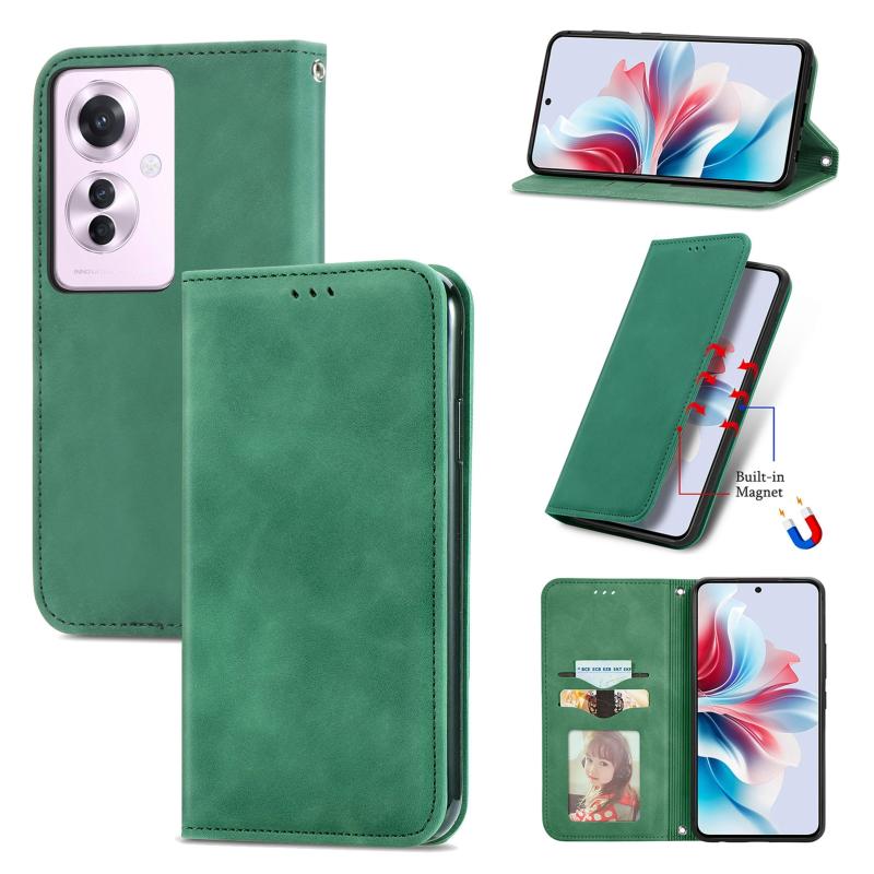Για OPPO Reno11 F 5G Δερμάτινη Θήκη Flip με Μαγνητικό Κλείσιμο & Αίσθηση Retro (Πράσινο)