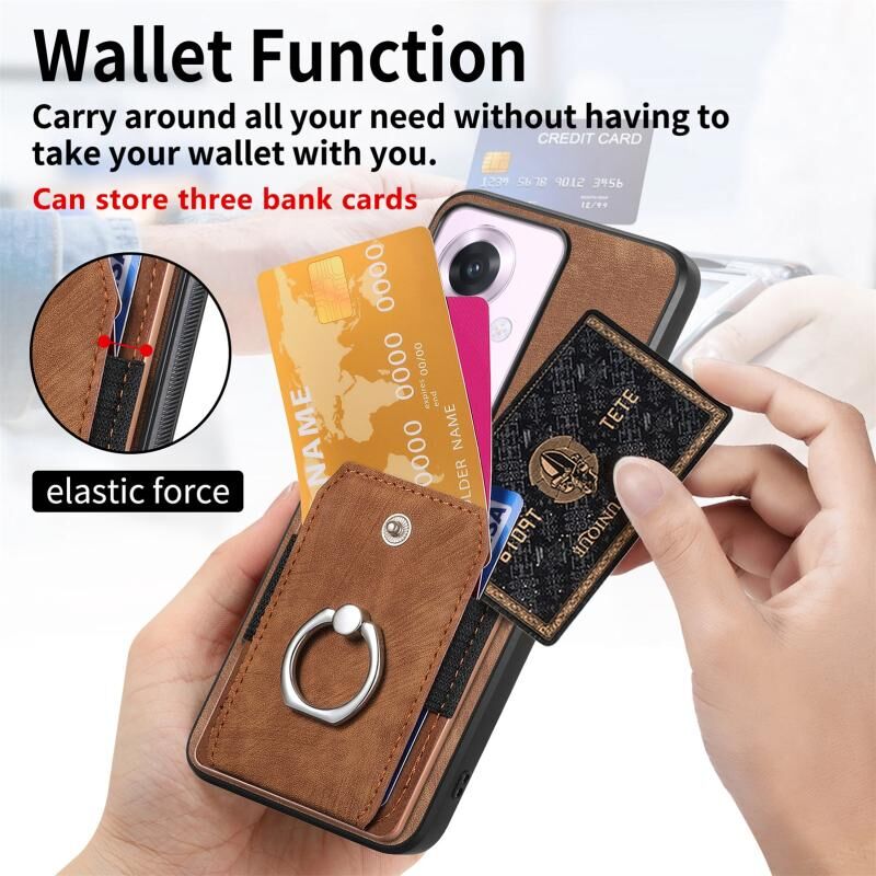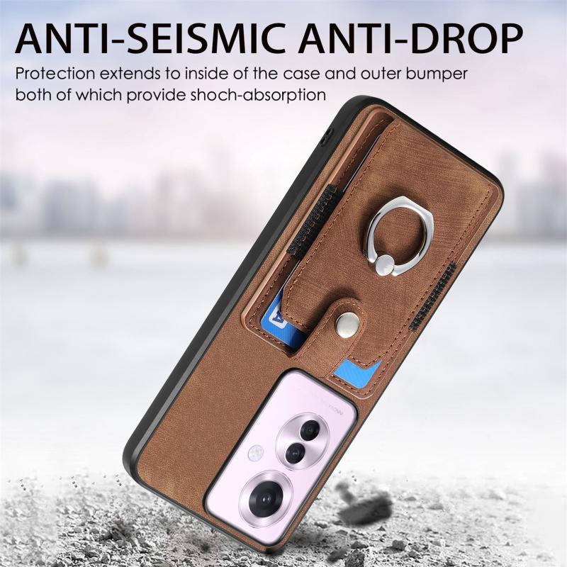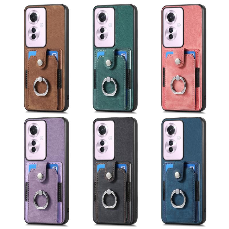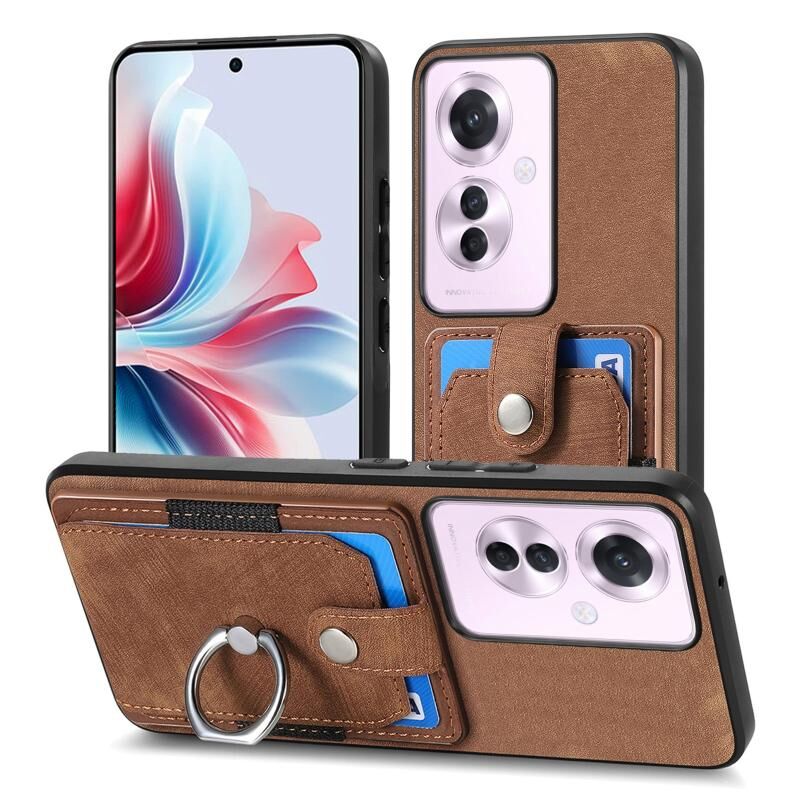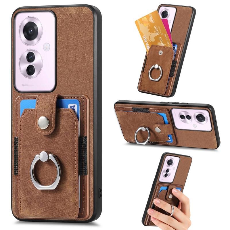 Θήκη τηλεφώνου με κάρτες και δακτύλιο για OPPO Reno11 F 5G, με υφή retro δέρματος (Ροζ)