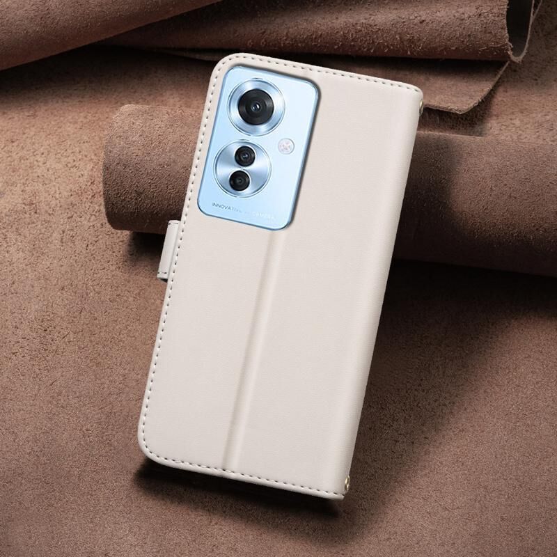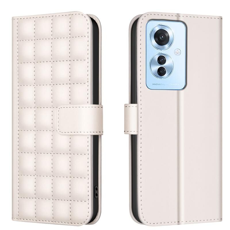 Θήκη τηλεφώνου από δέρμα με τετράγωνη υφή για OPPO Reno11 F 5G (Μπεζ)