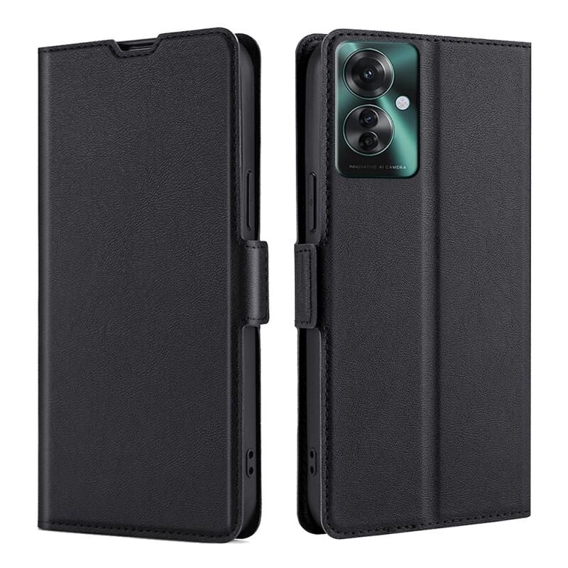 Θήκη τηλεφώνου από δέρμα με οριζόντιο άνοιγμα και λεπτό σχεδιασμό για OPPO Reno11 F 5G (Μαύρο)