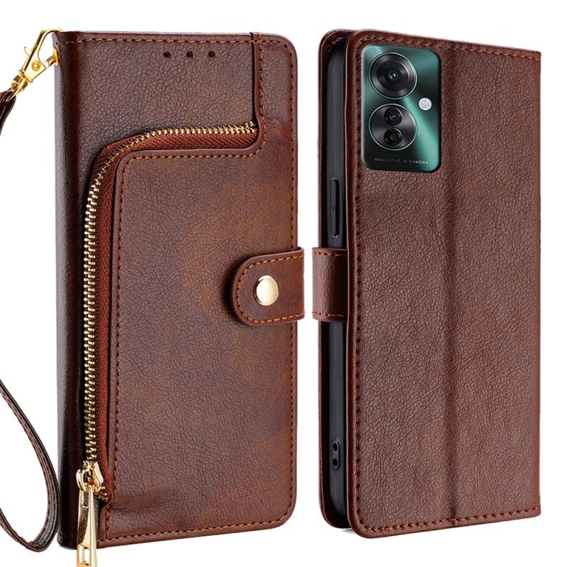 For OPPO Reno11 F 5G Zipper Bag Leather Phone Case(Brown)