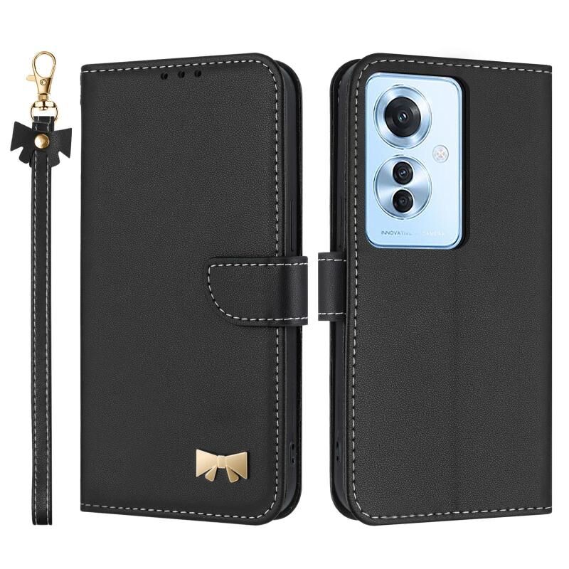Θήκη τηλεφώνου από δέρμα μεταλλικού τόξου για OPPO Reno11 F / F21 Pro India με λουρί χειρός (Κόκκινο)