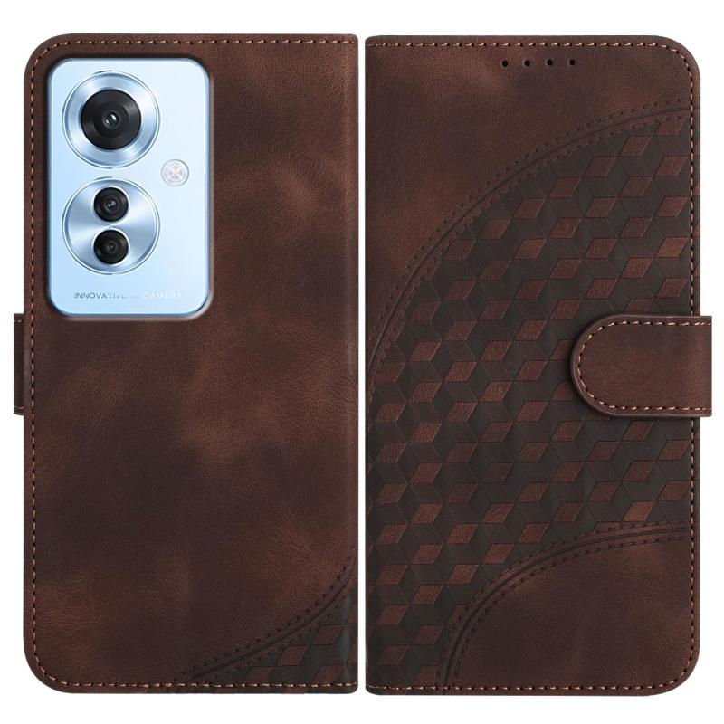Θήκη δερμάτινη για OPPO Reno11 F / F25 Pro με ανάγλυφο σχέδιο κεφαλής ελέφαντα και κορδόνι (Καφέ)