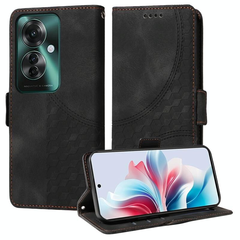 Για OPPO Reno11 F / F25 Pro ανάγλυφο Rhombus Starry δερμάτινη θήκη τηλεφώνου (μαύρο)