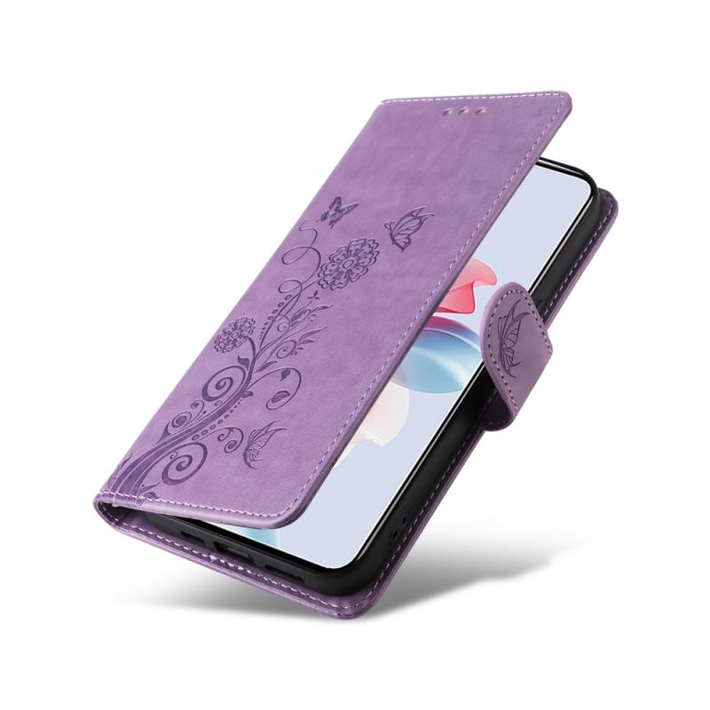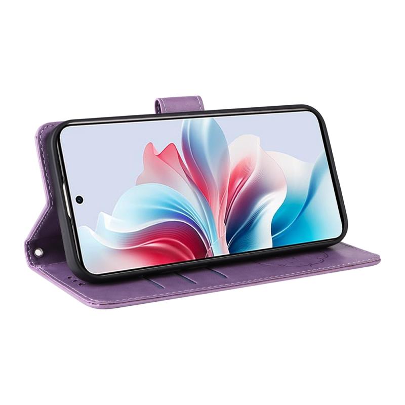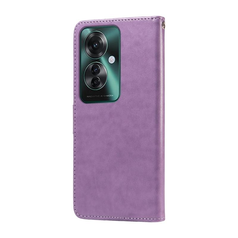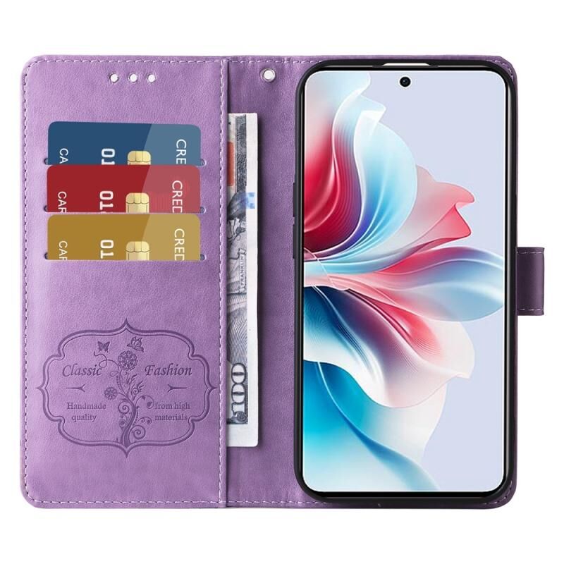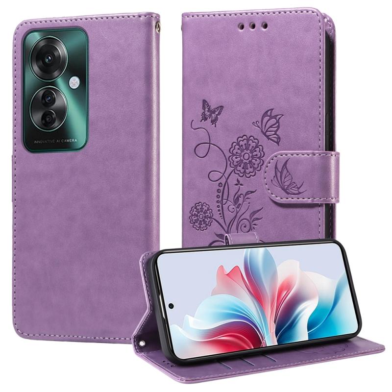 Θήκη τηλεφώνου από δέρμα με ανάγλυφα λουλούδια και πεταλούδες για OPPO Reno11 F / F25 Pro Global (Μωβ)