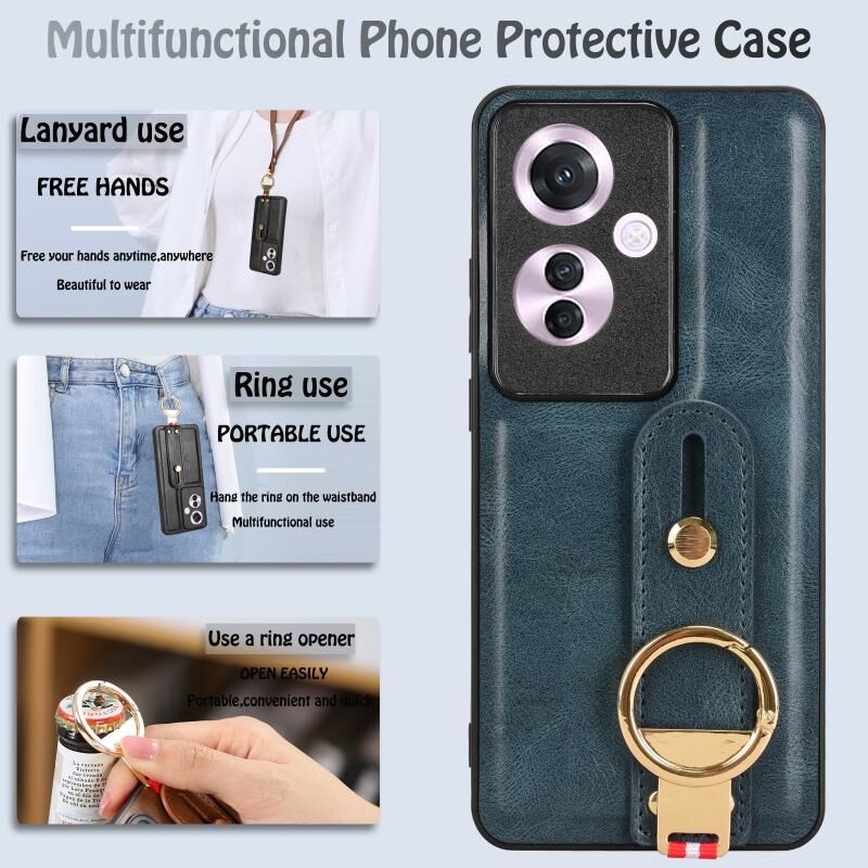 Για OPPO Reno11 F / F25 Pro Wristband δέρμα πίσω τηλέφωνο υπόθεση (Μπλε)