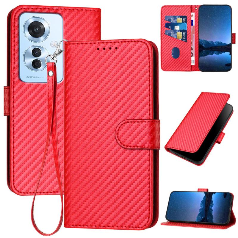 For OPPO Reno11 F / F25 Pro YX0070 Carbon Fiber Buckle Leather Phone Case with Lanyard(Red)