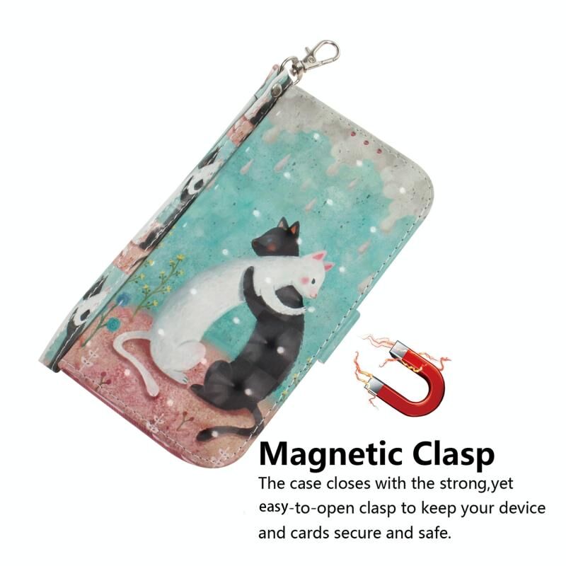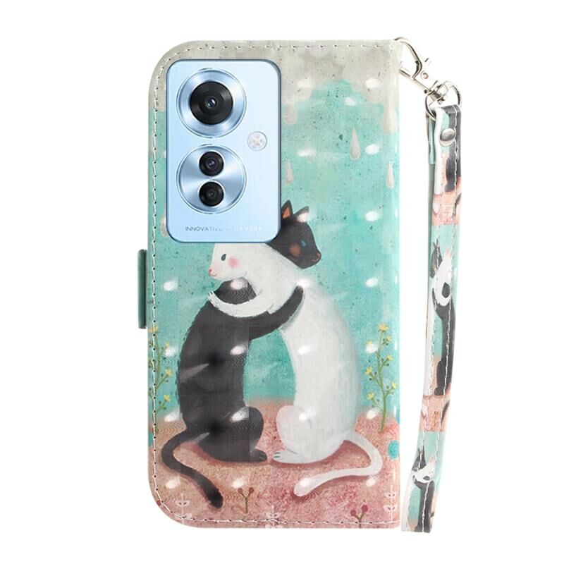 Θήκη τηλεφώνου από δέρμα με οριζόντιο άνοιγμα και τρισδιάστατο χρωματιστό σχέδιο για OPPO Reno11 F Global (Μαύρη Λευκή Γάτα)