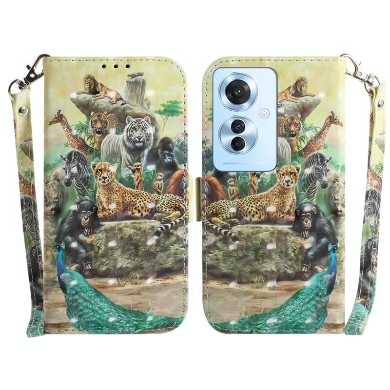 Θήκη τηλεφώνου από δέρμα με οριζόντια αναδίπλωση και τρισδιάστατα χρώματα για OPPO Reno11 F Global (Ζωολογικός κήπος)