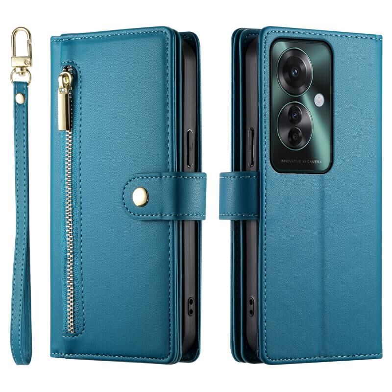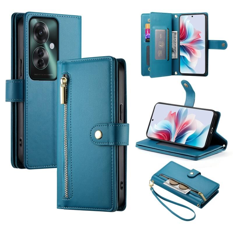 Για OPPO Reno11 F Εννέα Card-slot φερμουάρ πορτοφόλι τσάντα δερμάτινη θήκη τηλεφώνου (μπλε)