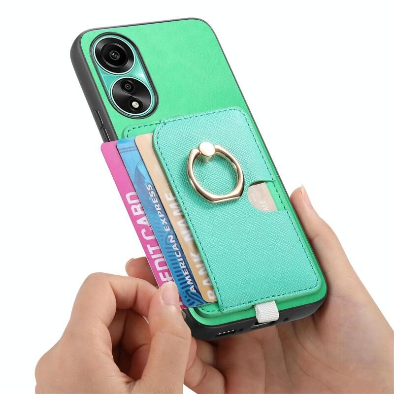 Θήκη τηλεφώνου OPPO Reno11 F Retro Cross Leather Ring Side Insert Card Bag MagSafe (Κίτρινο)