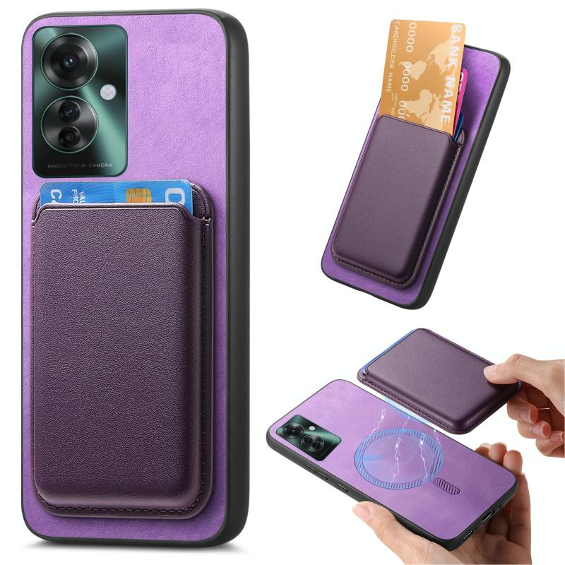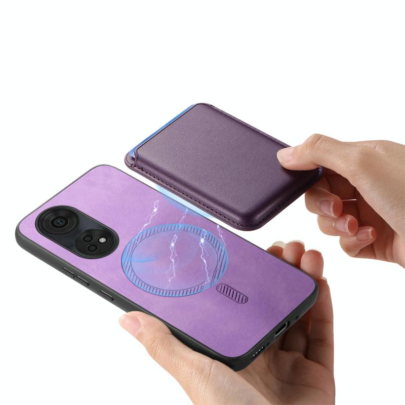 Για OPPO Reno11 F Ρετρό Θήκη Κάρτας MagSafe PU (Μωβ)