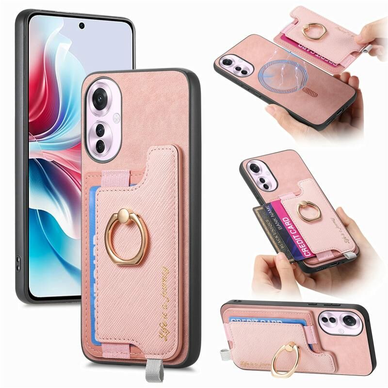 Θήκη τηλεφώνου για OPPO Reno11 F Retro Magsafe Cross Δερμάτινος Δακτύλιος Κάρτας (Κίτρινο)