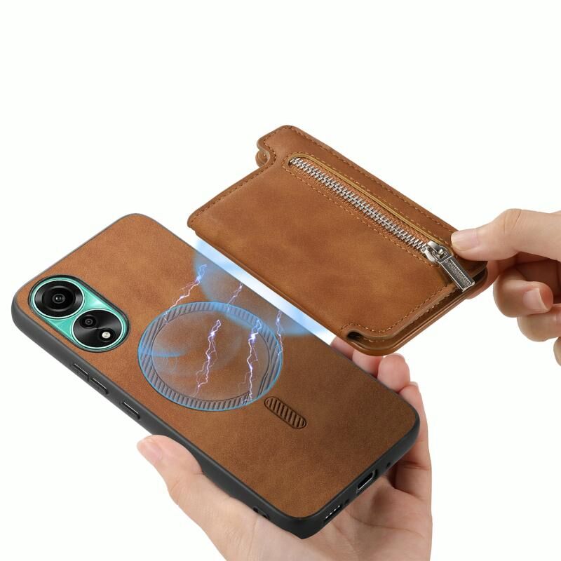 Θήκη κινητού τηλεφώνου για OPPO Reno11 F Retro MagSafe με θήκη πορτοφολιού και φερμουάρ (Κίτρινο)
