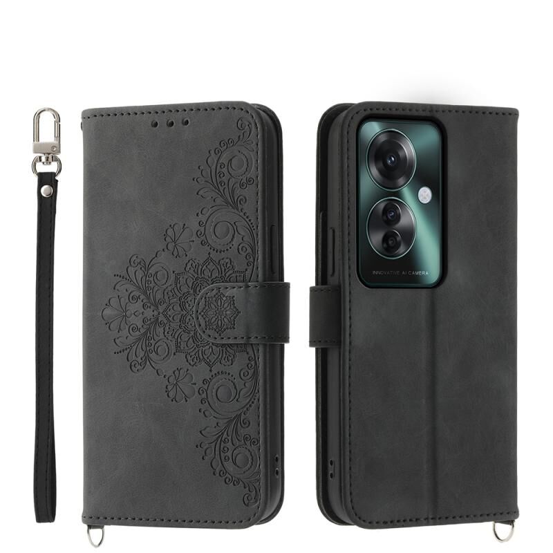 Θήκη τηλεφώνου από δέρμα με ανάγλυφα λουλούδια και υφή δέρματος για OPPO Reno11 F (Μαύρο)