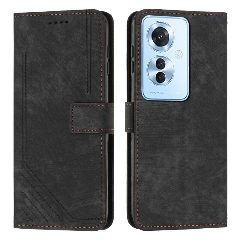Για OPPO Reno11 F δέρμα αίσθηση λωρίδα μοτίβο δερμάτινη θήκη τηλεφώνου με κορδόνι (Μαύρο)