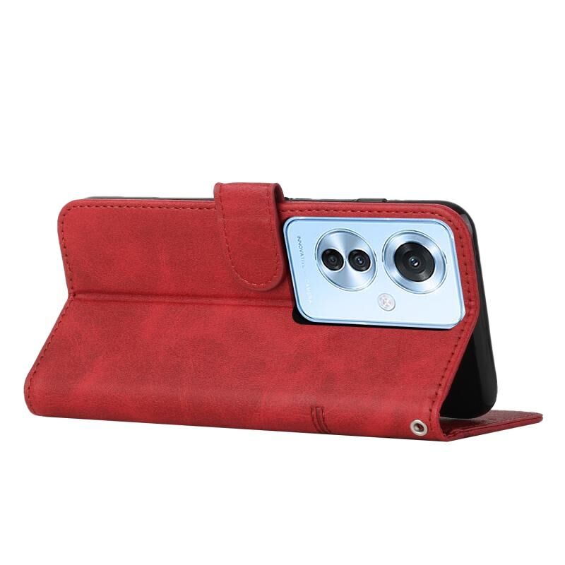 Θήκη τηλεφώνου από δέρμα με αγκράφα και υφή μοσχαριού ραφής για OPPO Reno11 F (Κόκκινο)