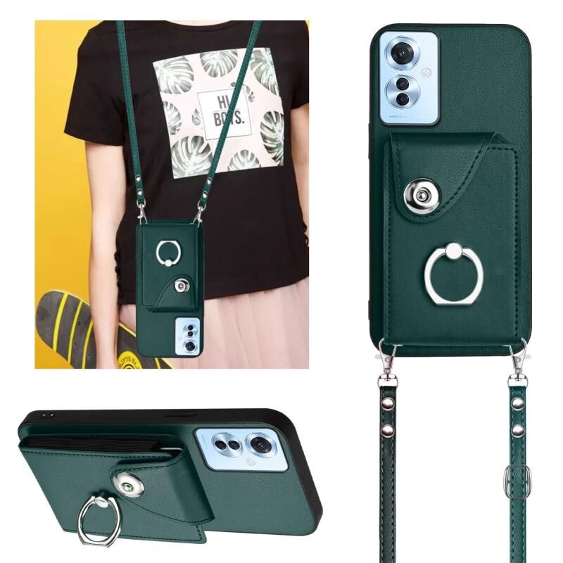 Για OPPO Reno11 F έκδοση της Ταϊλάνδης Οργάνου κάρτα τσάντα δαχτυλίδι κάτοχος υπόθεση τηλεφώνου με μακρύ κορδόνι (πράσινο)