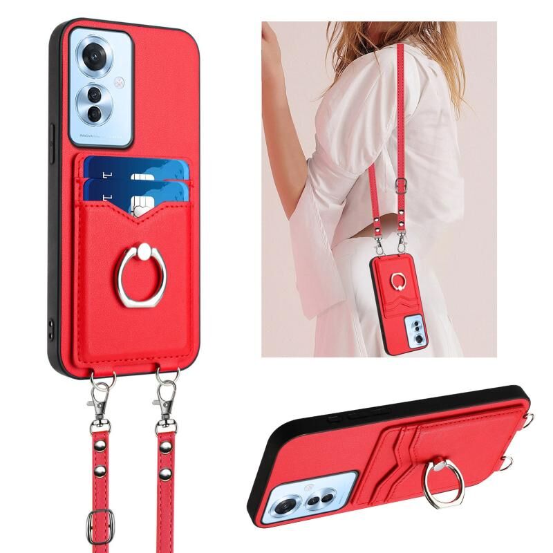 Για OPPO Reno11 F Ταϊλάνδης έκδοση R20 Crossbody σχοινί δαχτυλίδι κάρτα κάτοχος υπόθεση τηλεφώνου (κόκκινο)