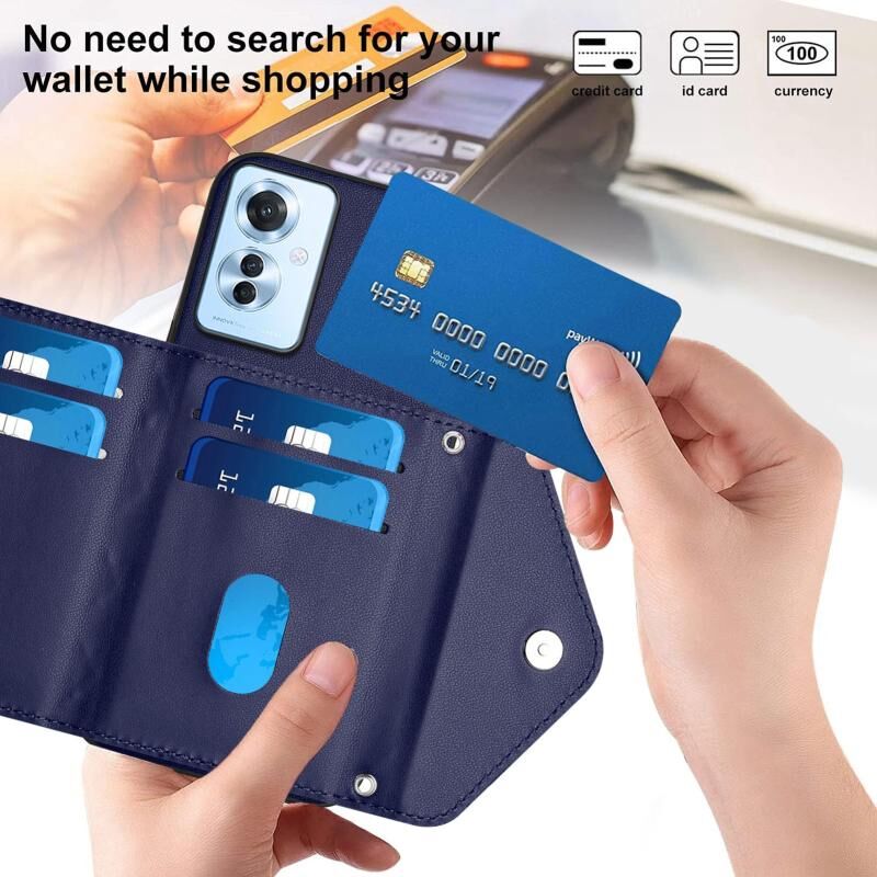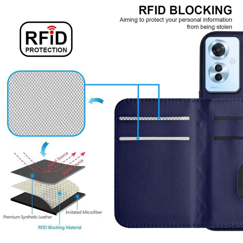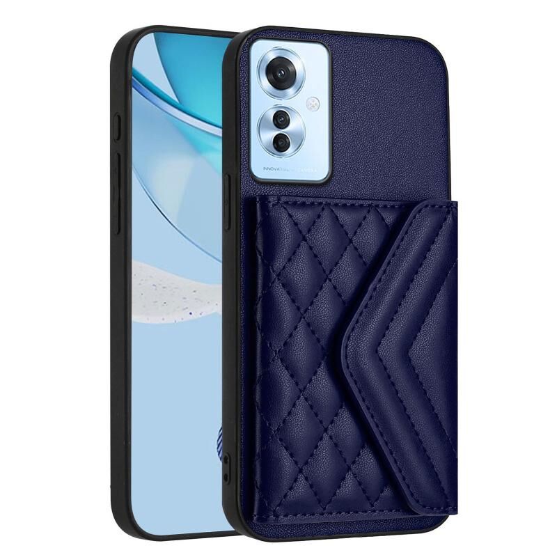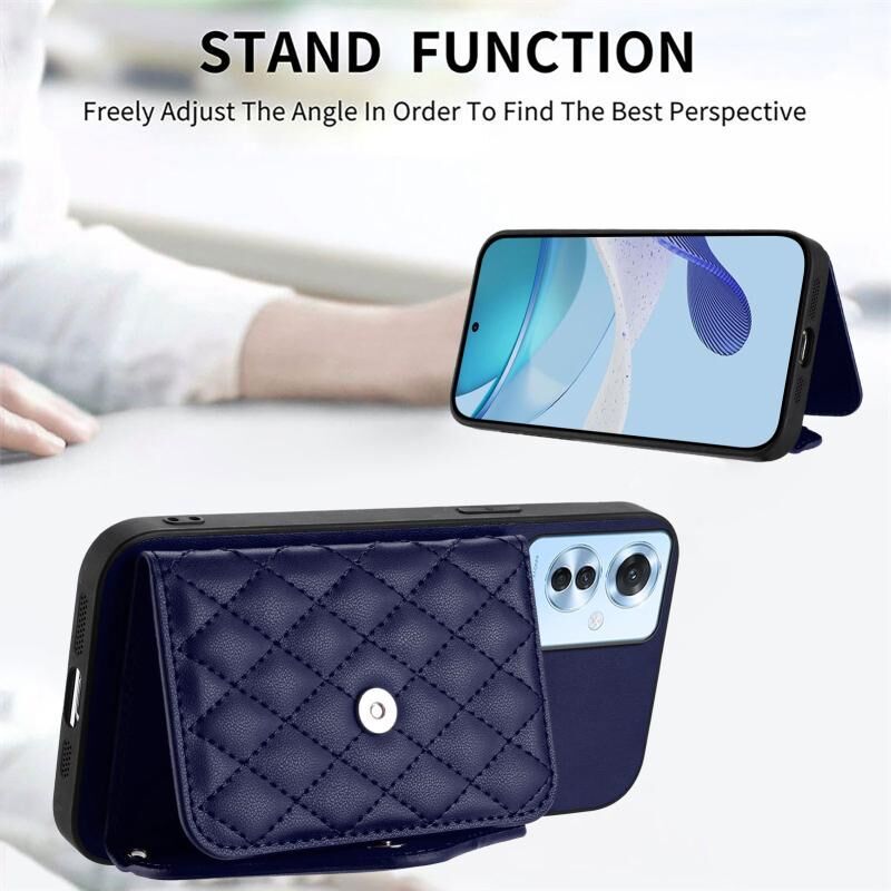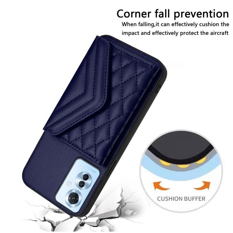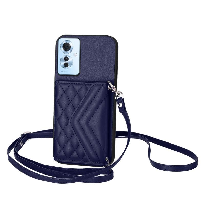 Για OPPO Reno11 F Ταϊλάνδης έκδοση Rhombic Υφή κάρτα τσάντα RFID υπόθεση τηλεφώνου με μακρύ κορδόνι(Μπλε)