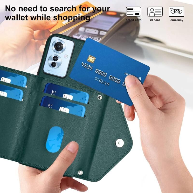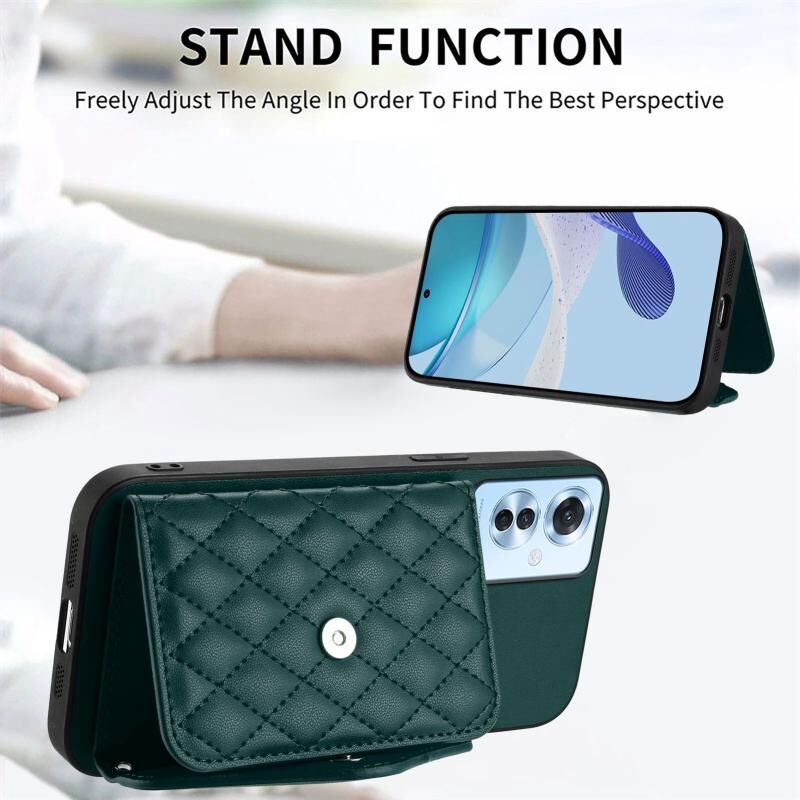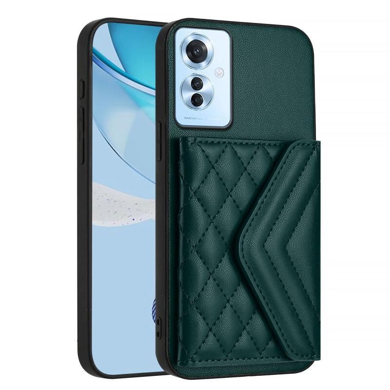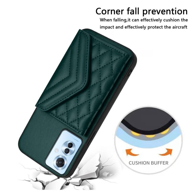 Για OPPO Reno11 F Ταϊλάνδης έκδοση Rhombic Υφή κάρτα τσάντα RFID υπόθεση τηλεφώνου με μακρύ κορδόνι (πράσινο)