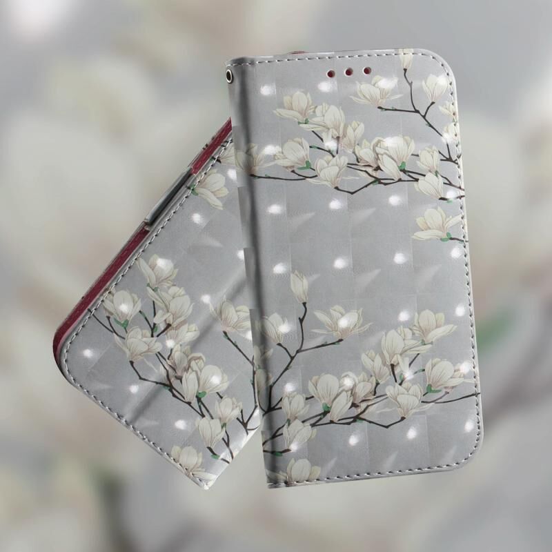 Θήκη τηλεφώνου δερμάτινη, οριζόντια, αναδιπλούμενη, με τρισδιάστατο χρωματιστό σχέδιο για OPPO Reno11 Global (Μαγνολία)