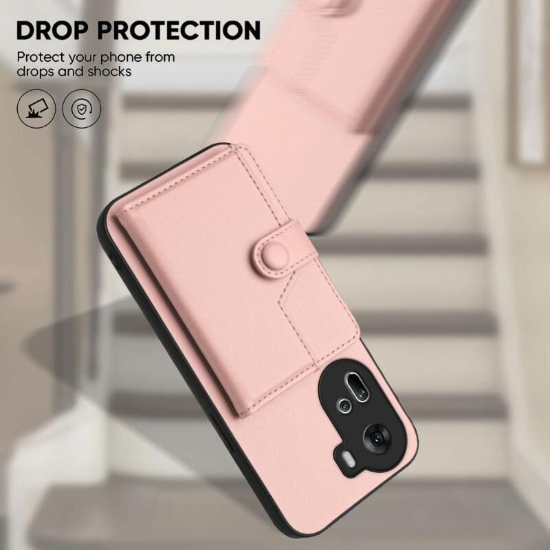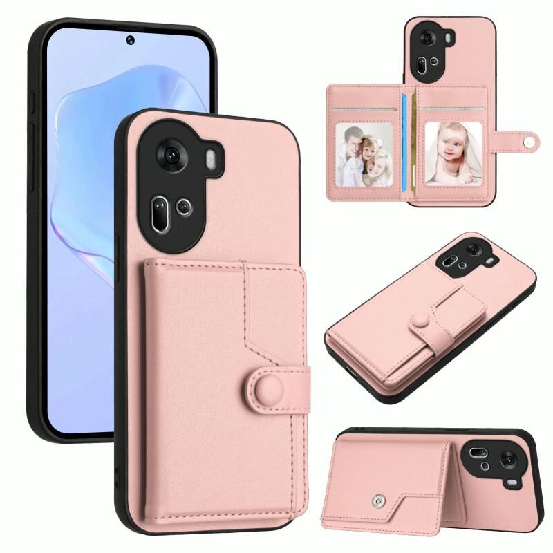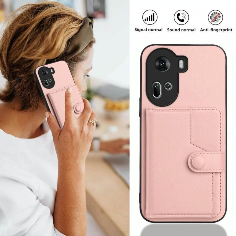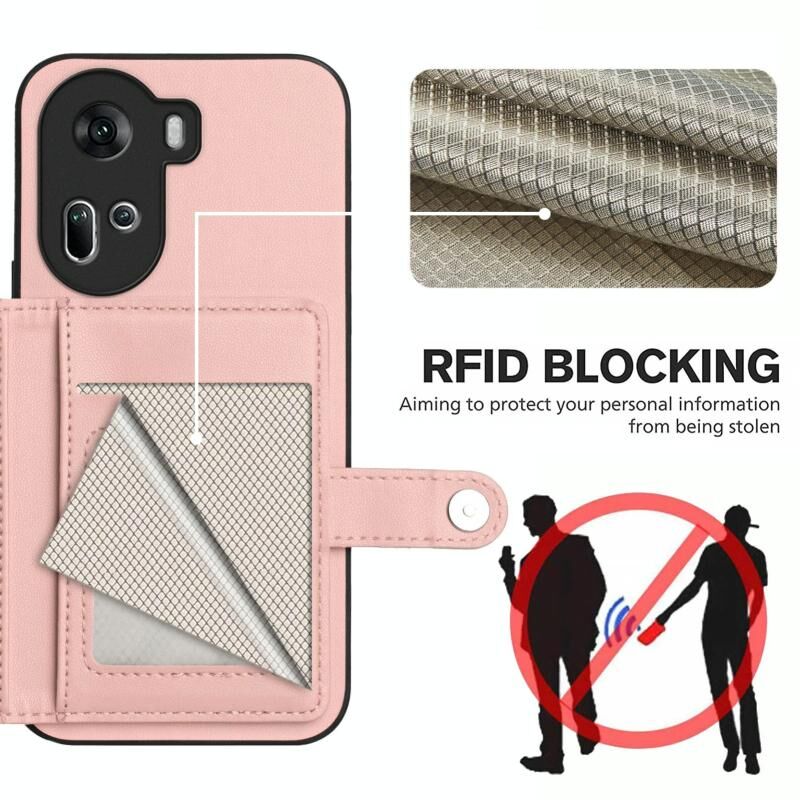 Για OPPO Reno11 Παγκόσμια κάρτα Button τσάντα RFID Anti-theft τηλέφωνο υπόθεση (ροζ)