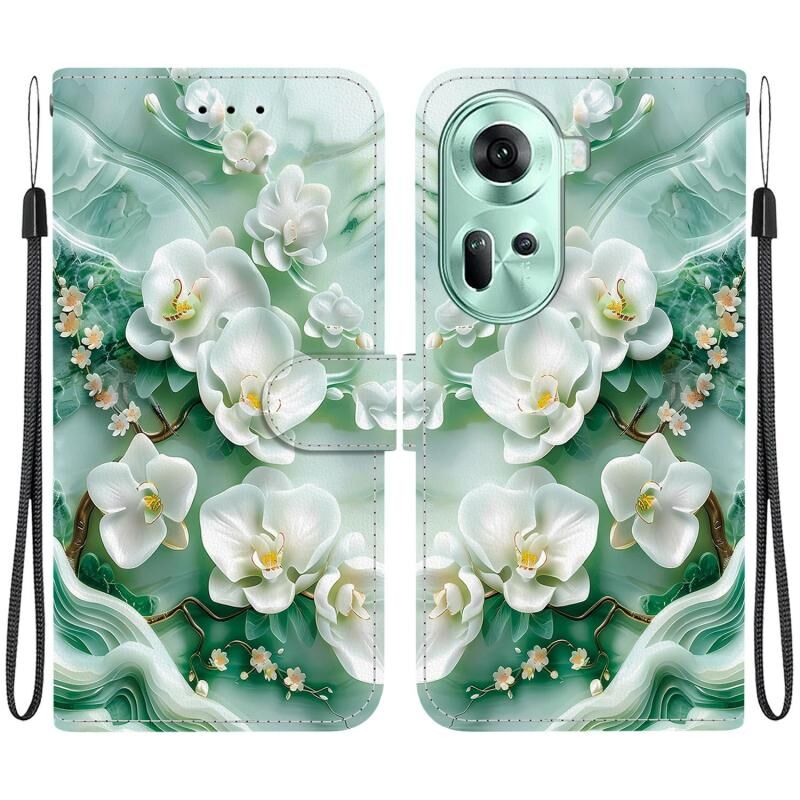 Θήκη τηλεφώνου OPPO Reno11 Global Crystal Texture Colored Drawing Leather (Λουλούδια νεφρίτη)