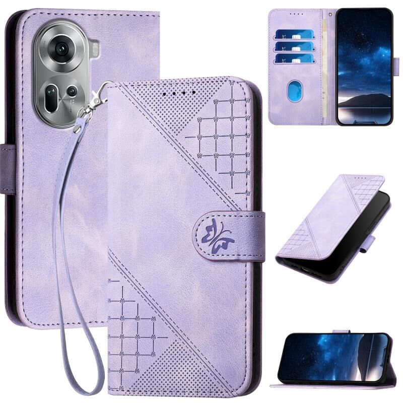 Θήκη τηλεφώνου από δέρμα με ανάγλυφο σχέδιο πεταλούδας σε πλέγμα για OPPO Reno11 Global με κορδόνι (Σκούρο Μπλε)