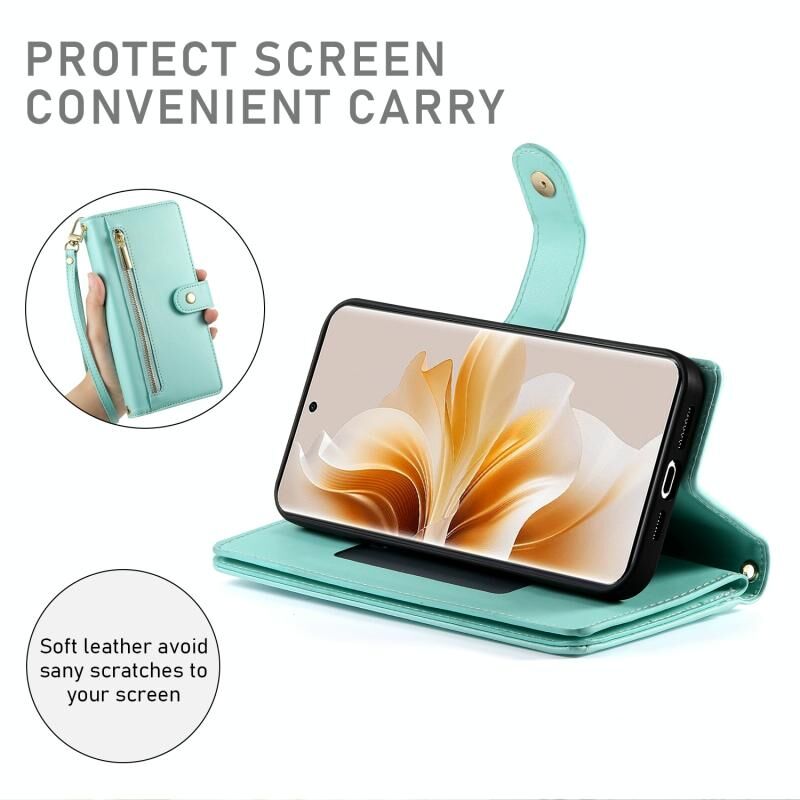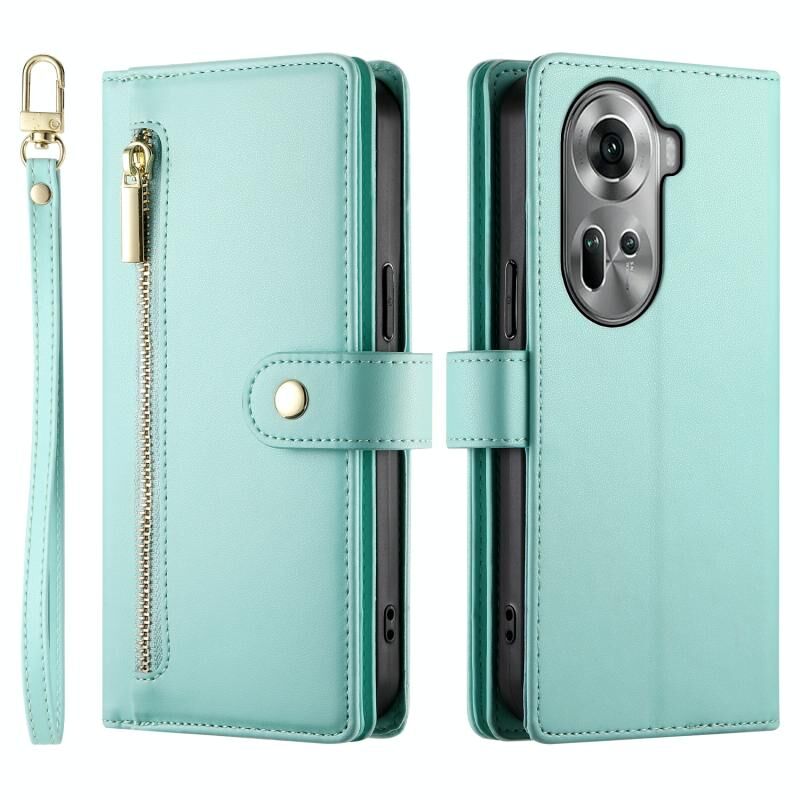 Για OPPO Reno11 Παγκόσμια εννέα κάρτα-θυρίδα φερμουάρ πορτοφόλι τσάντα δερμάτινη θήκη τηλεφώνου (πράσινο νομισματοκοπείο)
