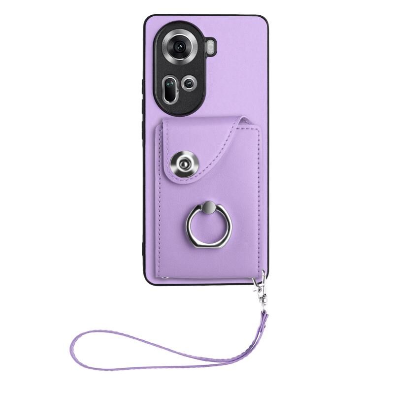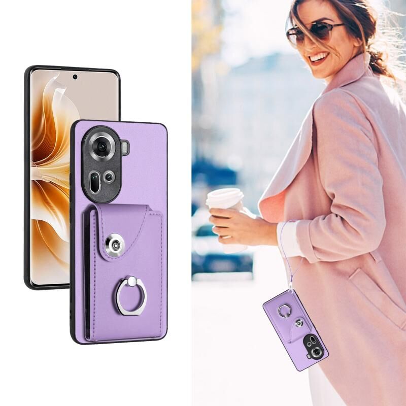 Για OPPO Reno11 Παγκόσμια Οργάνου κάρτα τσάντα δαχτυλίδι κάτοχος PU υπόθεση τηλεφώνου με κορδόνι (μωβ)
