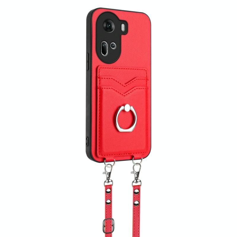 Για OPPO Reno11 Παγκόσμια R20 Crossbody σχοινί δαχτυλίδι κάρτα κάτοχος υπόθεση τηλεφώνου (κόκκινο)