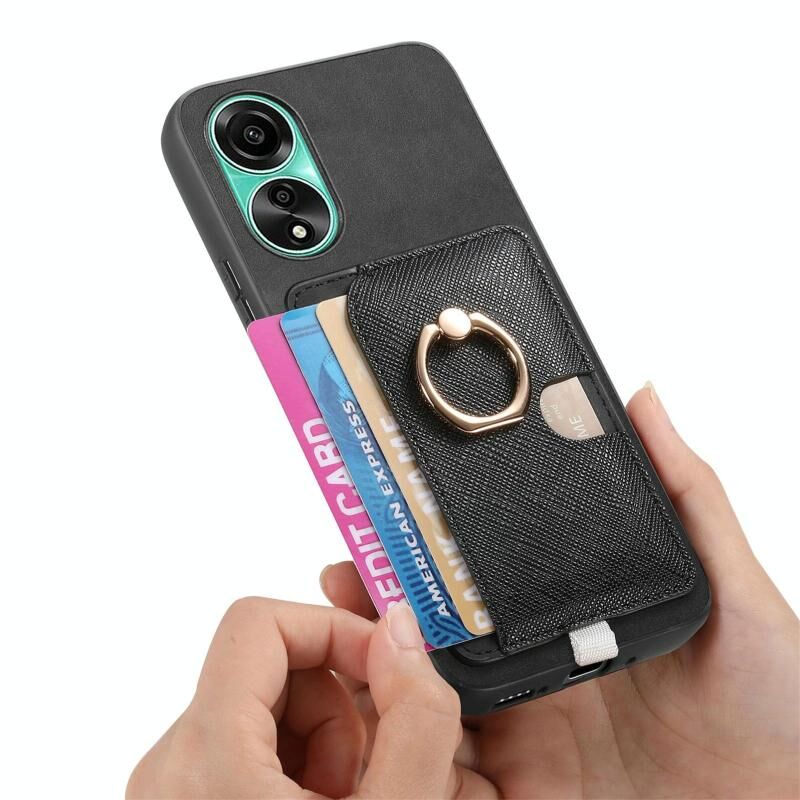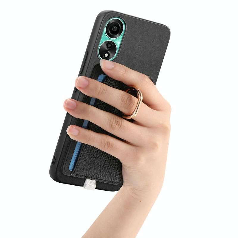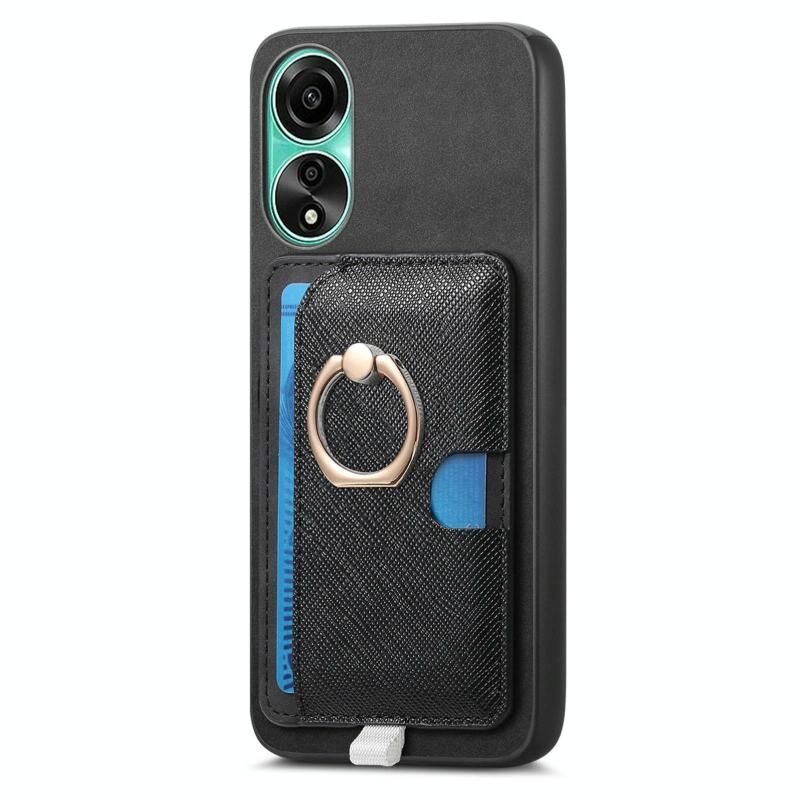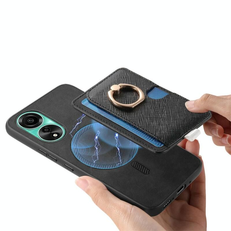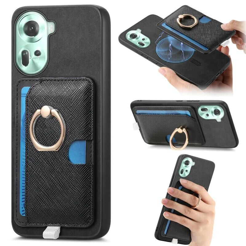Θήκη τηλεφώνου OPPO Reno11 Global Retro Cross Leather Ring Side Insert Card Bag MagSafe (Μαύρο)