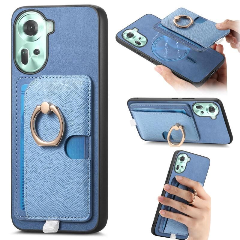 Θήκη τηλεφώνου OPPO Reno11 Global Retro Cross Leather Ring Side Insert Card Bag MagSafe (Μπλε)