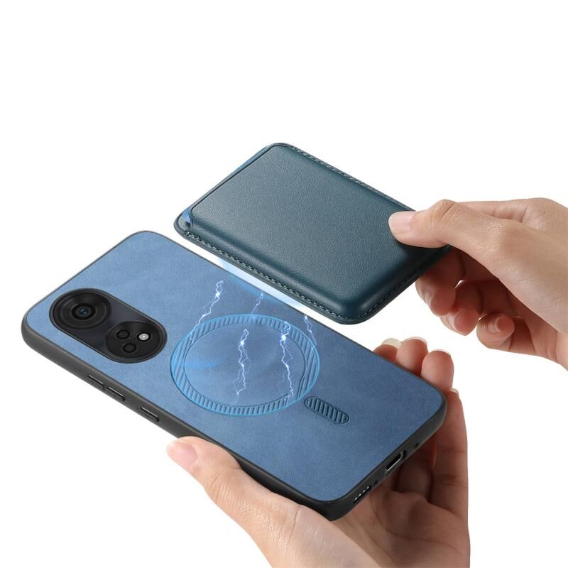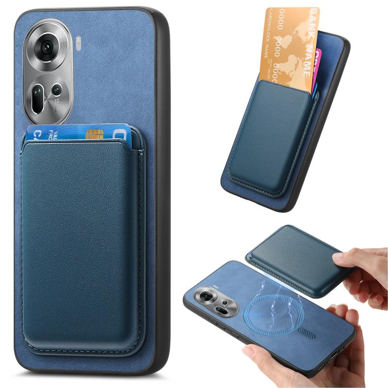 Για OPPO Reno11 Global Θήκη Κάρτας MagSafe PU Back Cover (Μπλε)