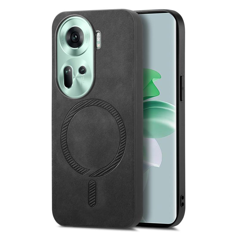 For OPPO Reno11 Global Retro Magsafe Magnetic PU Back Cover Phone Case(Black)