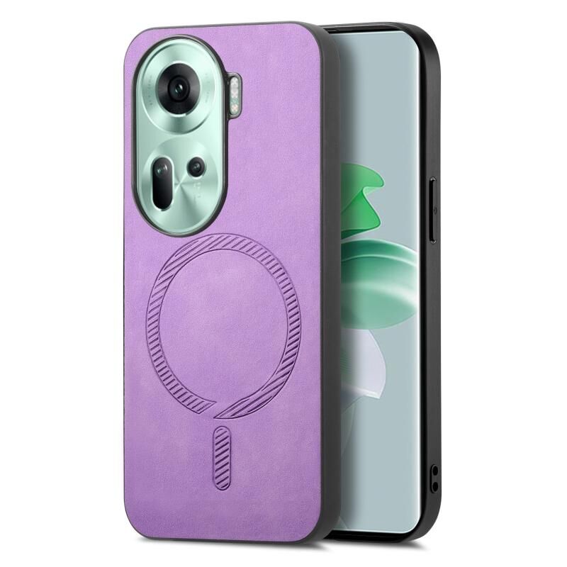 Θήκη κινητού τηλεφώνου OPPO Reno11 Global Retro Magsafe Μαγνητική PU Πίσω Κάλυμμα (Μωβ)