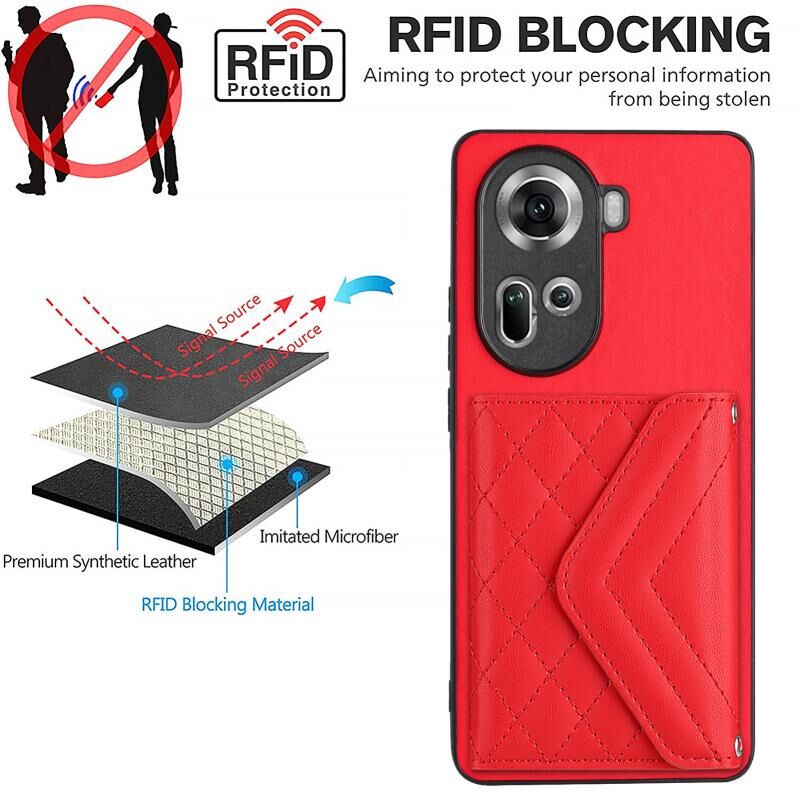 Για OPPO Reno11 Παγκόσμια Rhombic Υφή κάρτα τσάντα RFID υπόθεση τηλεφώνου (Κόκκινο)