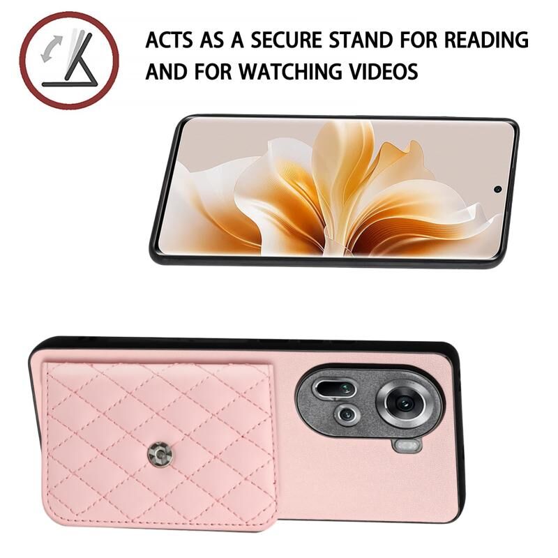 Για OPPO Reno11 Παγκόσμια Rhombic Υφή κάρτα τσάντα RFID υπόθεση τηλεφώνου (Ροζ χρυσός)