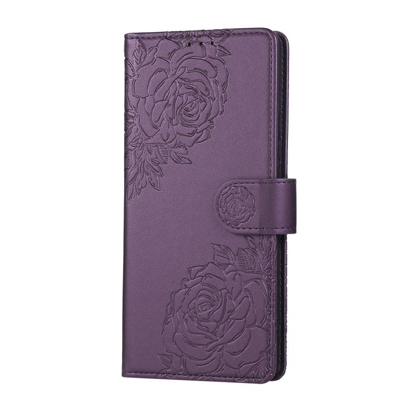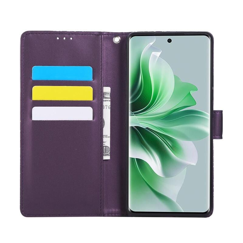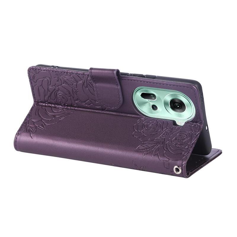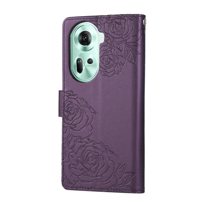 For OPPO Reno11 Global Rose Flower Embossed 3-Card Slots Leather Phone Case(Deep Purple)