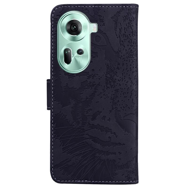 Θήκη τηλεφώνου από δέρμα με σχέδιο τίγρης σε ανάγλυφο για OPPO Reno11 Global (Μαύρο)