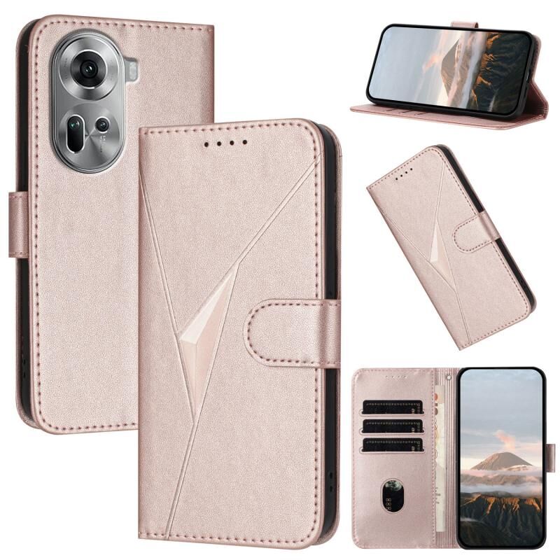 Θήκη τηλεφώνου από δέρμα με μαγνητικό κούμπωμα και τριγωνικό σχέδιο για OPPO Reno11 Global (Σκούρο Μωβ)